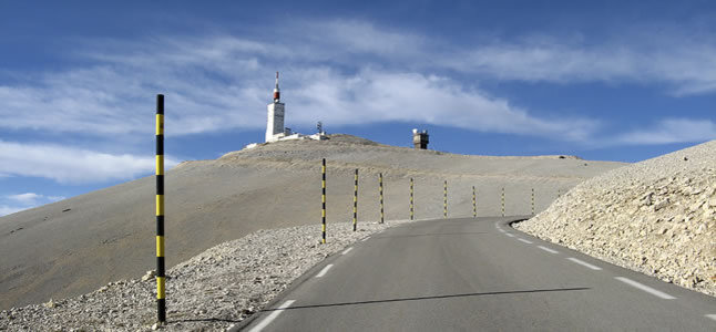 Radeln auf dem Mont Ventoux, der Traum eines jeden Radtouristen Der Mont Ventoux, gelegen in der Provence, ist für viele Radtouristen eine fantastische Herausforderung. Neben den steilen Anstiegen, stellen Windböen von manchmal mehr als 300 km/h enorme Anforderungen.