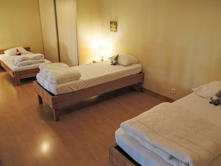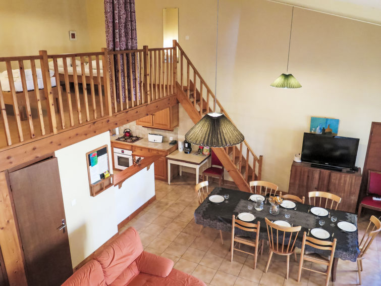 "Le Pigeonnier", 4-Zimmer-Reihenhaus 100 m2. Einfach und schön eingerichtet: Wohn-/Esszimmer mit Esstisch und TV (Flachbildschirm). Ausgang zur Terrasse. 2 Zimmer, jedes Zimmer mit 1 franz. Bett (140 cm, Länge 190 cm). Offene Küche (Backofen, Geschirrspüler, 4 Flammen, Toaster, Wasserkocher, Mikrowelle, Tiefkühler, elektrische Kaffeemaschine). 2 Duschen/WC. Obergeschoss: 1 Zimmer mit 1 franz. Bett (140 cm, Länge 190 cm). Abgeschrägte Galerie mit 4 Betten (90 cm, Länge 190 cm). E-Heizung. Terrasse 20 m2 teilweise überdacht. Terrassenmöbel. Sicht auf den Wald. Bitte beachten: geeignet für Familien. Nichtraucher-Haus. Maximal 2 Haustiere/Hunde erlaubt. Rauchmelder. Inserat einer Privatperson nach Artikel 155, IV, CGI.