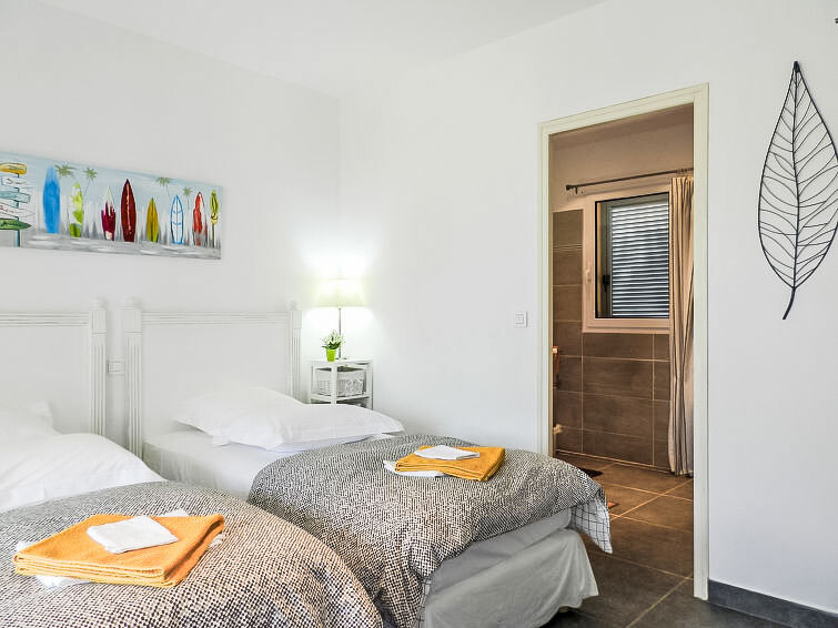 Villa 4-kamers 175 m2 op 2 verdiepingen. Ruim, zeer mooi en smaakvol ingericht: woonkamer met TV (Flatscreen TV), stereo-installatie en DVD. Eetkamer. Uitgang naar het terras. 1 kamer met Kleedkamer met 1 2-pers bed (160 cm), douche/WC. Open keuken (5-pits kookplaat, oven, afwasmachine, broodrooster, waterkoker, magnetron, diepvriezer, elektrische koffiemachine, kookeiland). Aparte WC. Bovenverdieping: 1 kamer met Kleedkamer met 1 2-pers bed (140 cm), douche/WC. Uitgang naar het balkon. 1 kamer met Kleedkamer met 2 bedden (90 cm), douche/WC. Uitgang naar het balkon. Elektrische verwarming, air-conditioning. Balkon 20 m2, terras 65 m2. Terrasmeubelen, barbecue, ligstoelen (5). Zeer mooi uitzicht op zee en de bergen. Ter beschikking: wasmachine, strijkijzer, kinderbed, haardroger. Internet (Internet (WiFi), gratis). Geschikt voor families. Rookvrij huis. Rookmelders. FR51885