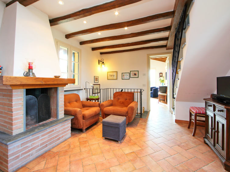 Villa 5-kamers 110 m2 op 3 verdiepingen. Licht, comfortabel en gezellig ingericht: open woonkamer met Sat-TV. Uitgang naar de tuin. Open keuken (4-pits kookplaat, oven, afwasmachine, broodrooster, waterkoker, magnetron, diepvriezer, elektrische koffiemachine) met eettafel. Uitgang naar de veranda. Aparte WC. Souterrain: 1 2-pers. kamer. Uitgang naar het terras. 1 kamer met 2 bedden. Uitgang naar het terras. Douche/bidet/WC. Bovenverdieping: woon-/slaapkamer met afgeschuinde daken met 1 divanbed en 1 2-pers bed. Douche/bidet/WC. Verwarming. Groot tuin. Terrasmeubelen, barbecue, ligstoelen (3). Uitzicht op de bergen en het landschap. Ter beschikking: wasmachine, strijkijzer, klamboe, kinderstoel, kinderbed tot 2 jaar, haardroger. Internet (WiFi, extra). Parkeerplaats (omheind, 3 Auto's) bij het huis. Rookvrij huis. Maximaal 1 huisdier/hond toegestaan. Rookmelders, brandblusser. IT046018C2CFXIRQBQ