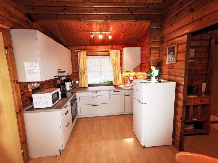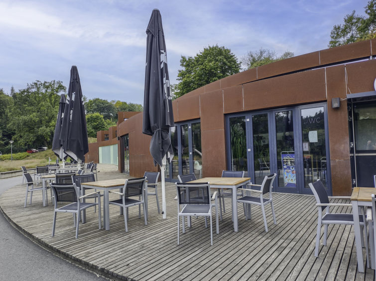 Bungalow 3-kamers 70 m2. Rustiek en gezellig ingericht: woon-/eetkamer met Sat-TV, Flatscreen TV en radio. Uitgang naar het terras. 1 kamer met 2 bedden. 1 kamer met 1 2-pers bed. Open keuken (oven, afwasmachine, 4 keramische glas kookplaten, broodrooster, waterkoker, magnetron, diepvriezer, elektrische koffiemachine). Douche/WC. Gas-verwarming. Houten vloeren. Terras 10 m2. Terrasmeubelen, bergruimte. Uitzicht op het bos. Ter beschikking: Internet (WiFi, gratis). Rookvrij huis. Maximaal 1 huisdier/hond toegestaan.