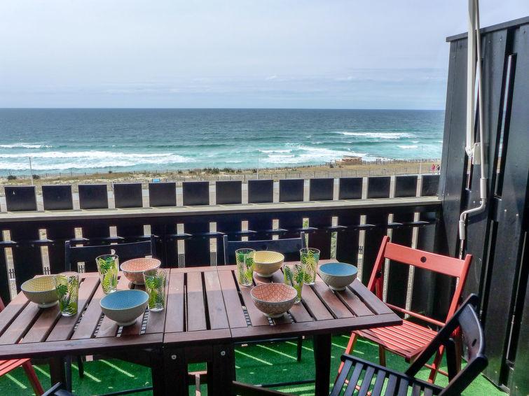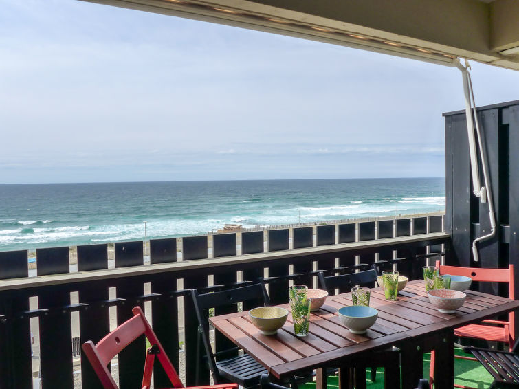 Lacanau-Ocean: Residentie "Les Océanides", van 4 verdiepingen. 300 m van het centrum, 20 m van zee, 6 km van het meer, 20 m van het strand, directe toegang tot het strand. Winkel 300 m, levensmiddelenwinkel 50 m, supermarkt 300 m, restaurant 50 m, bar 200 m, bakkerij 100 m, voetgangersgebied 200 m, fietsverhuur 500 m, bushalte "Salle l'Escoure Océan" 700 m, zandstrand "Plage sud" 20 m, meer (zwemmen) "Moutchic" 6 km. Golfterrein (18 holes) 4 km, zeilschool 10 km, tennis 2 km, manege 15 km. Attracties in de buurt: Bordeaux 60 km, Dune du Pilat 80 km, Arcachon 80 km, Saint Emilion 80 km, Lacanau Ville 10 km. Bekende meren kunnen gemakkelijk worden bereikt: Lac du moutchic 10 km, Lac de Maubuisson 20 km. Wandelgebied Chemin de Saint Jacques de Compostelle 500 m.