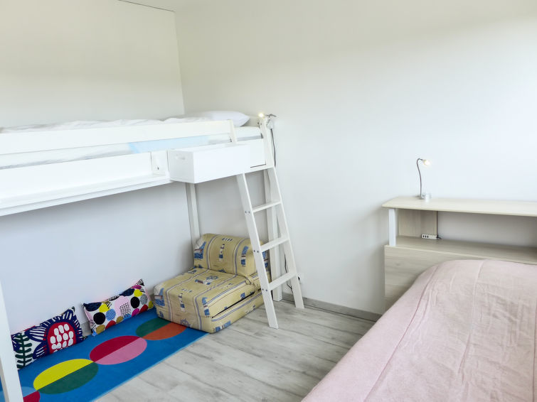 Appartement 3-kamers 51 m2 op 3 verdiepingen op de 3e verdieping, op het westen gelegen. Gerenoveerd in 2019, comfortabel ingericht: woon-/eetkamer met 1 2-pers divanbed (140 cm, lengte 190 cm), TV. Uitgang naar het balkon. Open keuken (oven, afwasmachine, 3 inductiekookplaten, magnetron, elektrische koffiemachine, pads voor de koffiemachine (Senseo) extra). Aparte WC. Souterrain: 1 kamer met 1 x 2 stapelbedden (90 cm, lengte 200 cm). Douche. Elektrische verwarming. Bovenverdieping: 1 kamer met 1 2-pers bed (140 cm, lengte 200 cm). Balkon, op het westen gelegen. Balkonmeubilair. Mooi uitzicht op zee. Ter beschikking: wasmachine, strijkijzer, haardroger. Internet (Internet (WiFi), gratis). Parkeerplaats nr. 772. Niet rokers woning. Rookmelders.