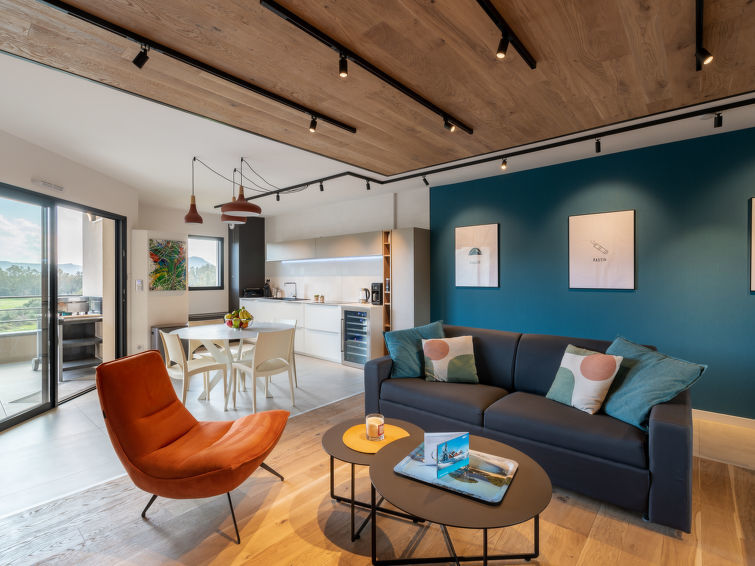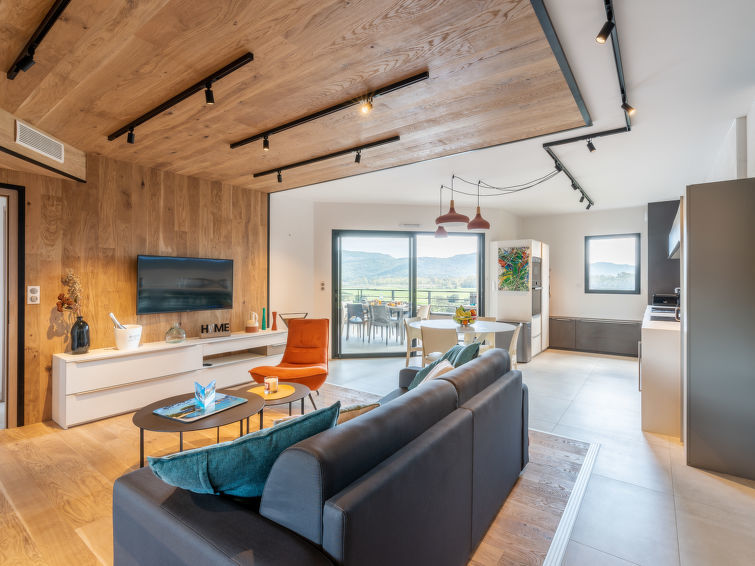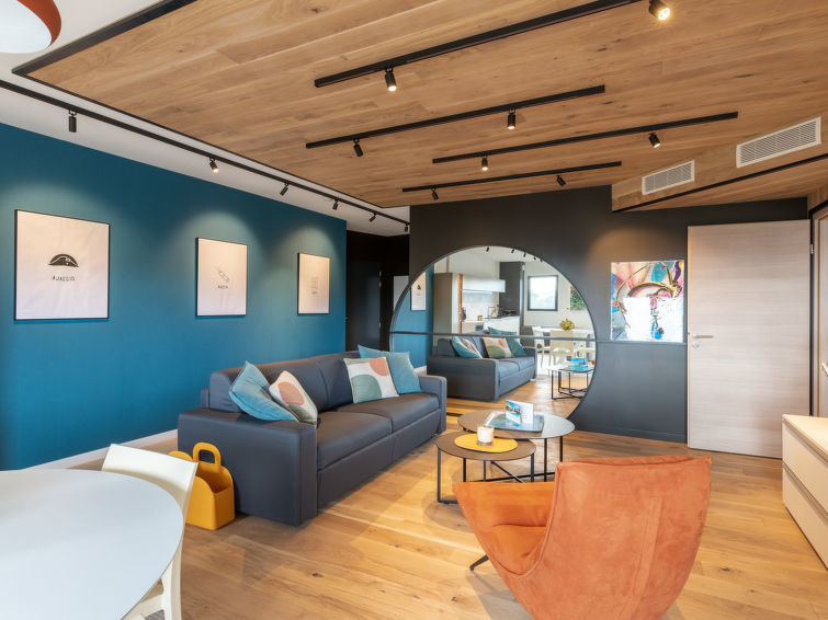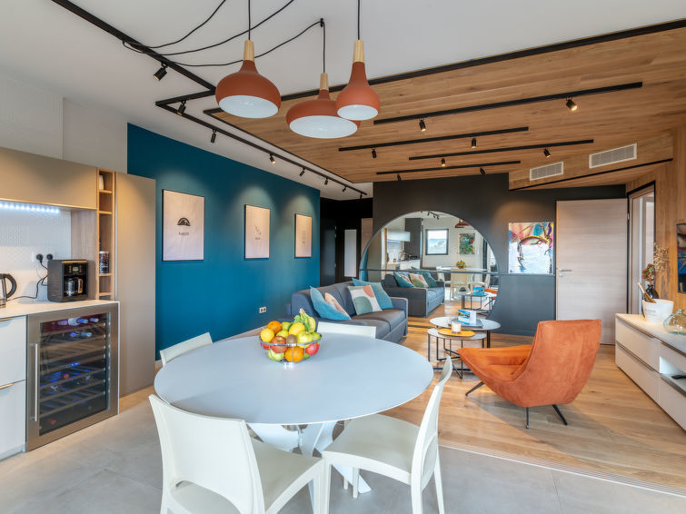 Appartement 3-kamers 72 m2 op de 5e verdieping. Zeer mooi en modern ingericht: woon-/eetkamer met 1 2-pers divanbed (160 cm, lengte 200 cm), TV (Flatscreen TV). Uitgang naar het terras. 1 kamer met 1 2-pers bed (160 cm, lengte 200 cm). Uitgang naar het terras. 1 kamer met 2 bedden (90 cm, lengte 190 cm). Open keuken (oven, afwasmachine, 4 inductiekookplaten, broodrooster, waterkoker, magnetron, diepvriezer, elektrische koffiemachine). Douche/WC. Elektrische verwarming, air-conditioning. Terras 25 m2. Terrasmeubelen. Mooi uitzicht op de bergen. Ter beschikking: wasmachine, droger. Internet (WiFi, gratis). Parkeerplaats. Geschikt voor families. Niet rokers woning. Rookmelders. 2A247000320EC