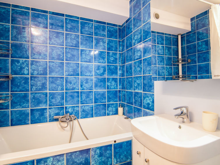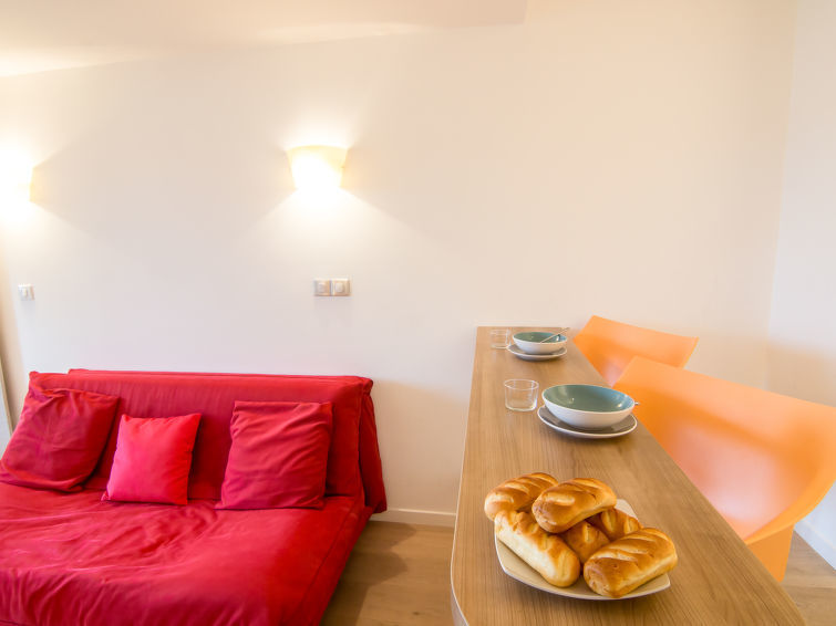 Appartement 1-kamer 25 m2 op de 6e verdieping. Modern ingericht: hal. Woon-/eetkamer met 1 2-pers divanbed (1 x 160 cm, lengte 200 cm), TV (Flatscreen TV). Uitgang naar het balkon. Kookhoek (2 keramische glas kookplaten, broodrooster, waterkoker, magnetron, elektrische koffiemachine). Bad/WC. Elektrische verwarming. Parketvloeren. Balkon 1 m2, op het oosten gelegen. Uitzicht op de haven. Ter beschikking: Internet (Internet (WiFi), gratis). Niet rokers woning. Rookmelders.