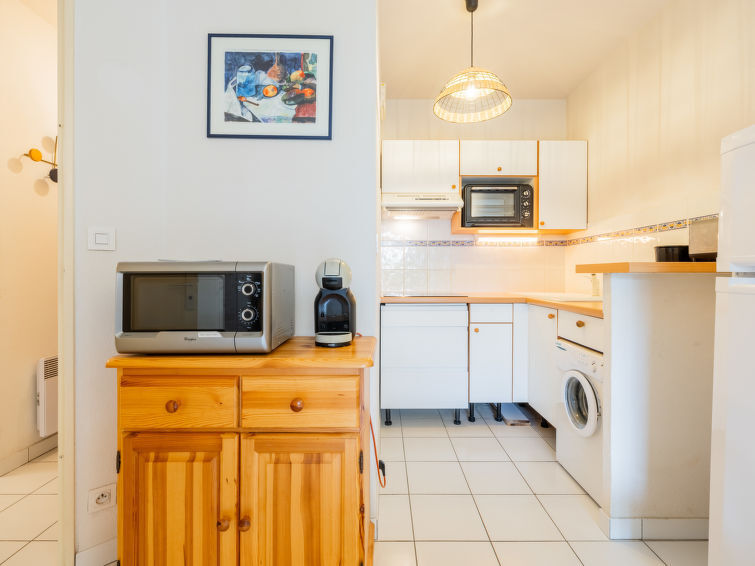 Appartement 3-kamers 40 m2, op de begane grond. Woonkamer met TV (Flatscreen TV). Uitgang naar het terras. 1 kamer met 1 2-pers bed (1 x 140 cm, lengte 190 cm). 1 kamer met 1 2-pers divanbed (1 x 140 cm, lengte 190 cm). Kookhoek (oven, 3 inductiekookplaten, broodrooster, magnetron, diepvriezer, elektrische koffiemachine). Douche, aparte WC. Elektrische verwarming. Groot terras 15 m2. Terrasmeubelen. Ter beschikking: wasmachine, strijkijzer. Internet (WiFi, gratis). Parkeerplaats nr. E29 (overdekt, 1 Auto), hoogte 190 cm, breedte 220 cm. Parkeerplaats alleen voor een kleine auto. Rookmelders. Aanbod door een particulier volgens art. 155, IV van CGI.