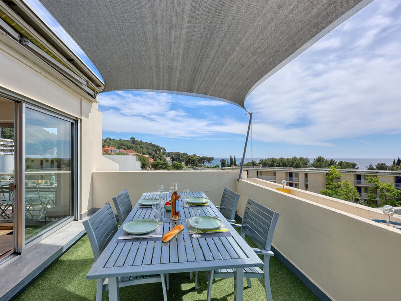 Appartement 2-kamers 55 m2 op de 2e verdieping. Licht, comfortabel en mooi ingericht: woon-/eetkamer met 1 2-pers divanbed (140 cm, lengte 190 cm), TV (Flatscreen TV), air-conditioning. Uitgang naar het terras. 1 kamer met 1 2-pers bed (140 cm, lengte 190 cm), air-conditioning. Open keuken (oven, afwasmachine, 4 inductiekookplaten, broodrooster, waterkoker, magnetron, diepvriezer, elektrische koffiemachine, pads voor de koffiemachine (Senseo) extra). Douche, aparte WC. Heteluchtverwarming. Groot terras 24 m2, 2 terrassen 5 m2. Terrasmeubelen, elektrische barbecue. Uitzicht op zee. Ter beschikking: wasmachine, droger, strijkijzer, kinderbed tot 2 jaar. Internet (WiFi, gratis). Parkeerplaats nr. 701 (1 Auto). Niet rokers woning. TV alleen FR. Rookmelders. Aanbod door een particulier volgens art. 155, IV van CGI. 13028002054CU