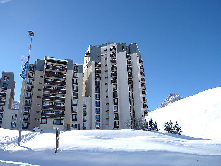 Tignes Val Claret: Residentie "Le Slalom (Val Claret)". 2 km van het meer, 300 m van het skigebied. In het complex: lift, berging voor ski's, centrale verwarming. Openbare parkeergarage op 100 m, extra. Supermarkt, winkelcentrum 100 m, restaurant 150 m, centrum te voet bereikbaar in 2 minuten, bushalte 200 m, overdekt zwembad 1.5 km. Sportcentrum 800 m, ski faciliteiten 300 m, skipisten 500 m, skibushalte 200 m. Attracties in de buurt: cinèma à 50m. Bekende skigebieden kunnen gemakkelijk worden bereikt: Espace Killy 300 km de pistes. Wandelgebied Tarentaise. Gratis skibus.