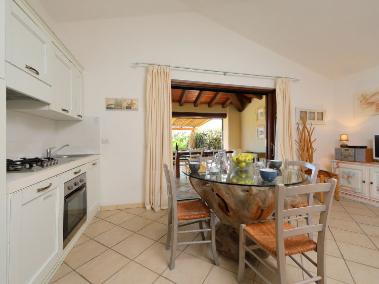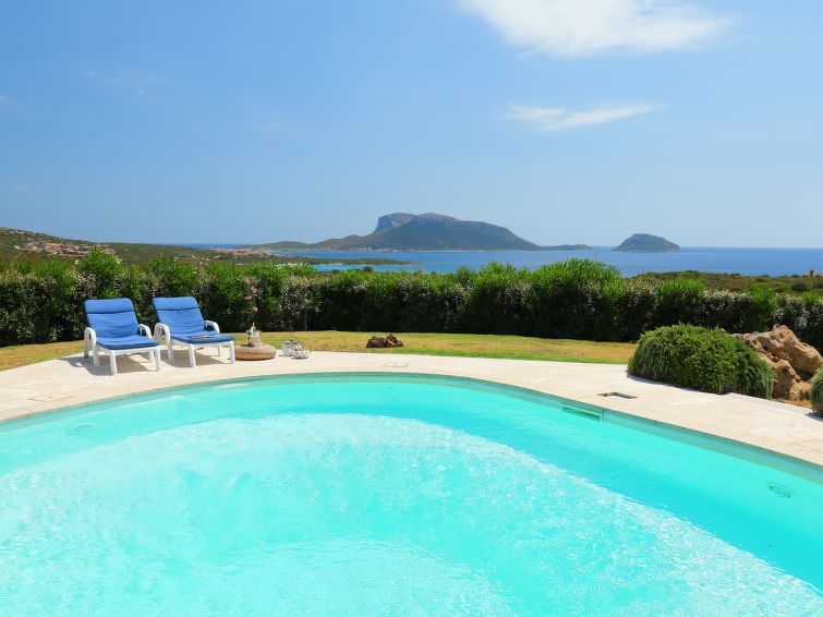 Comfortabel rijtjeshuis "Iris". In het gehucht Ville del golfo, 7.5 km van het centrum van Golfo Aranci, zonnige ligging tegen een helling, gebied met weinig verkeer, 2 km van zee. Voor alleengebruik: tuin met bloemen en bomen, openluchtzwembad (30 m2, seizoensgebonden beschikbaarheid: 01.Apr. - 31.Okt.). Buitendouche. Toegangsweg tot aan het huis. Parkeerplaats (voor 2 auto's). Parkeerplaats of garage alleen voor een kleine/middelgrote auto. Supermarkt 7.5 km, winkelcentrum 11 km, restaurant 7.5 km, bar 2 km, bushalte "sos aranzos" 1.1 km, zandstrand "Spiaggia Bianca" 2 km. Attracties in de buurt: Olbia 12 km. Auto noodzakelijk.