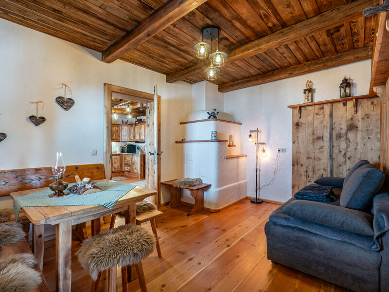"Heregger Hütte", chalet 5-kamers 150 m2 op 2 verdiepingen. Het objekt is geschikt voor 6 volwassenen + 4 kinderen. Licht, gerenoveerd in 2024, zeer gezellig en met veel hout ingericht: kleine woon-/eetkamer met 1 2-pers divanbed, eethoek en tegelkachel. 2 2-pers. kamers. 1 kleine kinderkamer met 2 x 2 stapelbedden. Woonkeuken (4-pits kookplaat, mini-oven, afwasmachine, waterkoker, diepvriezer, elektrische koffiemachine) met zwedenkachel, eethoek, Sat-TV en internationale TV-zenders (Flatscreen TV). Uitgang naar het balkon. Aparte WC. Vloerverwarming. Souterrain: 2 douches, dubbele wastafels, Sauna. Elektrische verwarming, vloerverwarming. Houten vloeren. Comfortabele inrichting in landelijke stijl. Balkon, groot terras 100 m2. Terrasmeubelen, balkonmeubilair, barbecue (verrijdbaar). Zeer mooi panoramazicht op de bergen. Ter beschikking: wasmachine, sauna, haardhout (gratis). Internet (WiFi, gratis). Garage op het terrein (2 Auto's). Rookvrij huis. Maximaal 1 huisdier/hond toegestaan.