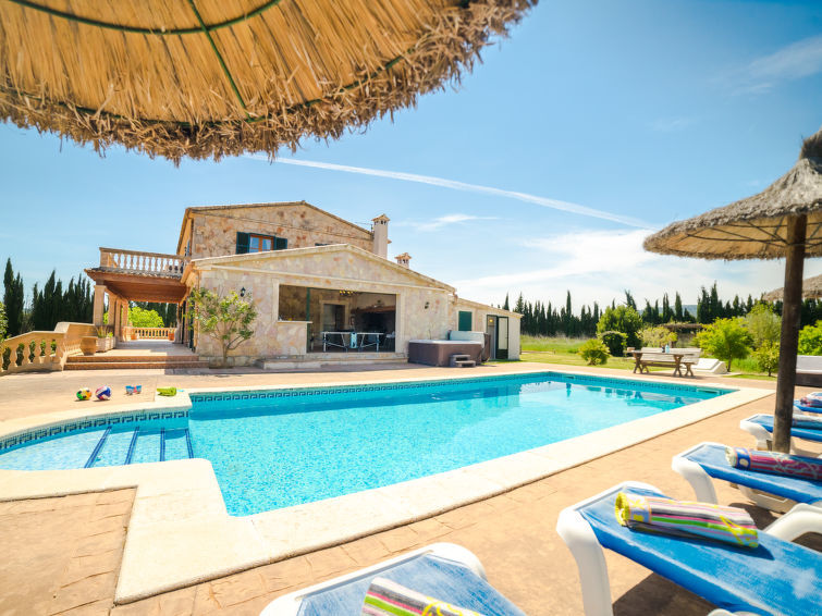 Alcúdia 5 km van Alcúdia-Pollença: Zeer groot, mooi, comfortabele villa "Vertaient", van 2 verdiepingen, gerenoveerd. Buiten de plaats, 4 km van het centrum van Alcúdia, rustige, zonnige ligging, 3 km van de bosrand, 7 km van zee, 7 km van het strand, te midden van groen. Voor alleengebruik: terrein 14.250 m2 (omheind), groot tuin met gazon en planten, openluchtzwembad hoekig (8 x 4 m, seizoensgebonden beschikbaarheid: 01.Jan. - 31.Dec.). Douche/WC bij het zwembad, buitendouche, hot tub, tafeltennis, patio, prieel, prieel, barbecue. In het huis: internetaansluiting, Internet (WiFi), bergruimte voor fietsen, centrale verwarming, air-conditioning, alarmsysteem, wasmachine. Parkeerplaats bij het huis op het terrein. Winkel 5 km, levensmiddelenwinkel 5 km, supermarkt 5 km, restaurant 5 km, bushalte 5 km, zandstrand 6.5 km, stenenstrand 7 km. Jachthaven 6.5 km, golfterrein (18 holes) 7 km, manege 4 km, kinderspeelplaats 4 km. Geschikt voor families, geschikt voor senioren. Het objekt is geschikt voor 8 volwassenen groepen jongeren uitsluitend op aanvraag. Laden en lossen van de baggage is mogelijk bij het huis. Dieren in de buurt. Vliegveld 55 km van het huis.